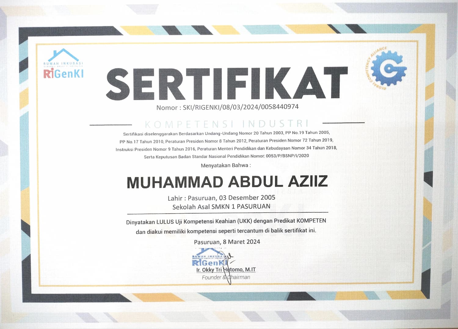 Diberikan karena dinyatakan LULUS Uji Kompetensi Keahlian (UKK) dengan predikat KOMPETEN dan diakui memiliki kompetensi yang tercantum di balik sertifikat.